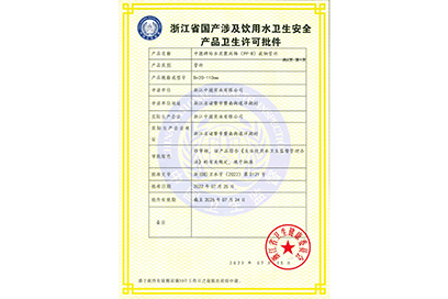 浙江省國產涉及飲用水衛生安全產品衛生許可批件
